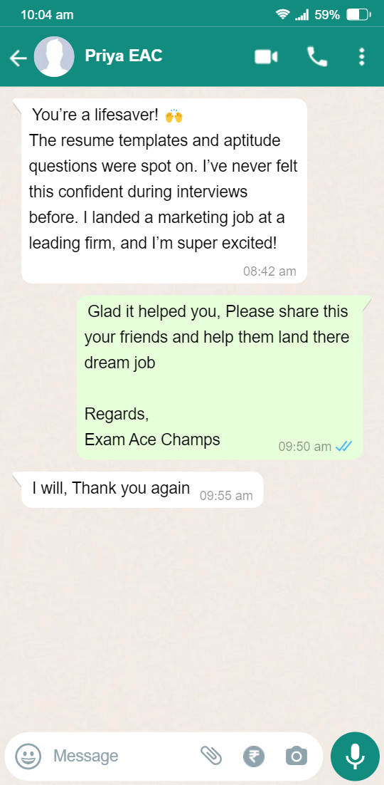 “This bundle gave me everything I needed to succeed. The question bank was my go-to practice tool, and the resume templates made my application shine. Rs 299 for this value? Absolutely worth it!”