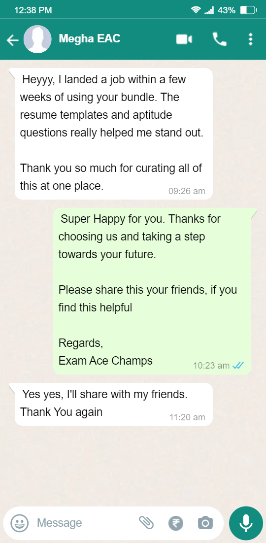 “I can’t believe I landed my dream job, and all I needed was this bundle! The interview questions were spot on, and the HR round Q&A gave me the confidence I needed. Best Rs 299 I’ve ever spent!”